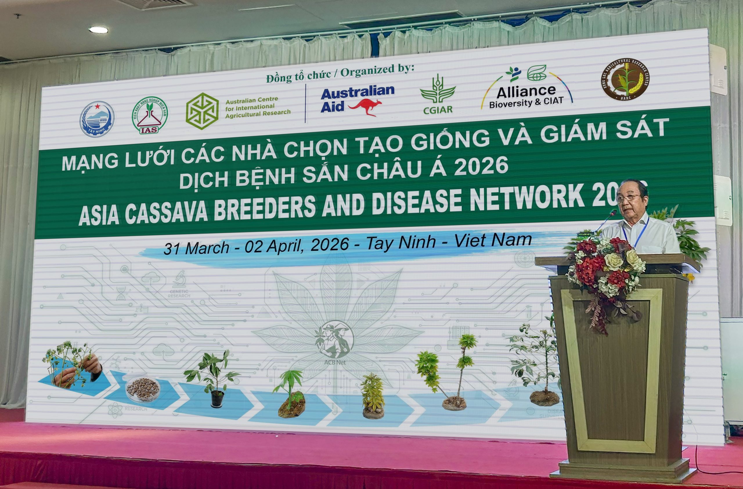 Vào ngày 31/03/2026, Ông Lê Hữu Hùng – Chủ tịch Tập đoàn Hùng Duy, Phó Chủ tịch phụ trách khu vực phía Nam của Hiệp hội Sắn Việt Nam và Chủ tịch Hiệp hội Sản xuất Tinh bột mì Tây Ninh đã tham gia và trình bày tham luận tại “Hội thảo quốc tế về mạng lưới các nhà chọn tạo giống và giám sát dịch bệnh sắn Châu Á 2026” do Viện Khoa học Kỹ thuật Nông nghiệp miền Nam (IAS) phối hợp cùng Liên minh Đa dạng sinh học quốc tế & CIAT và Sở Nông nghiệp và Môi trường Tây Ninh tổ chức.