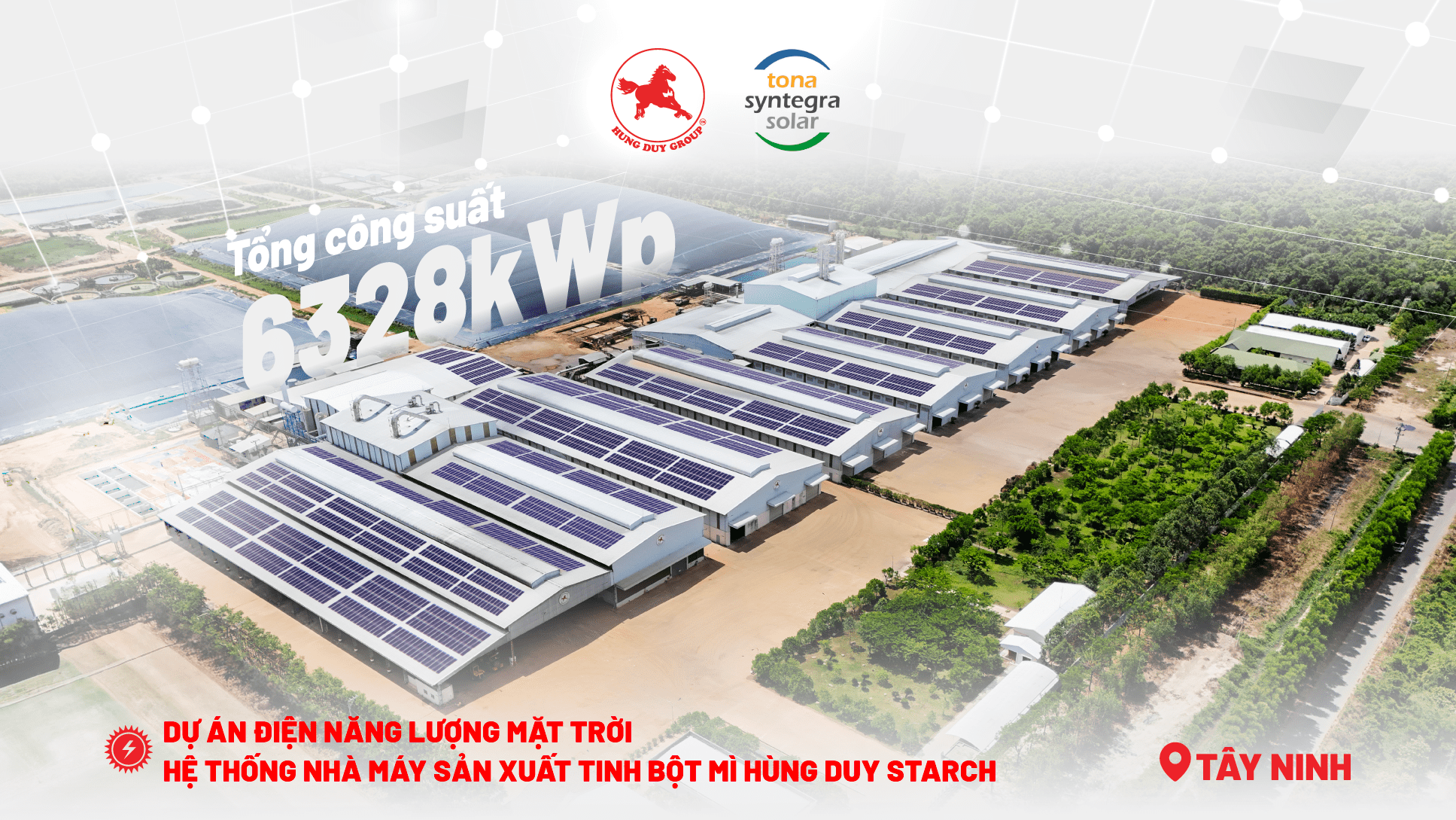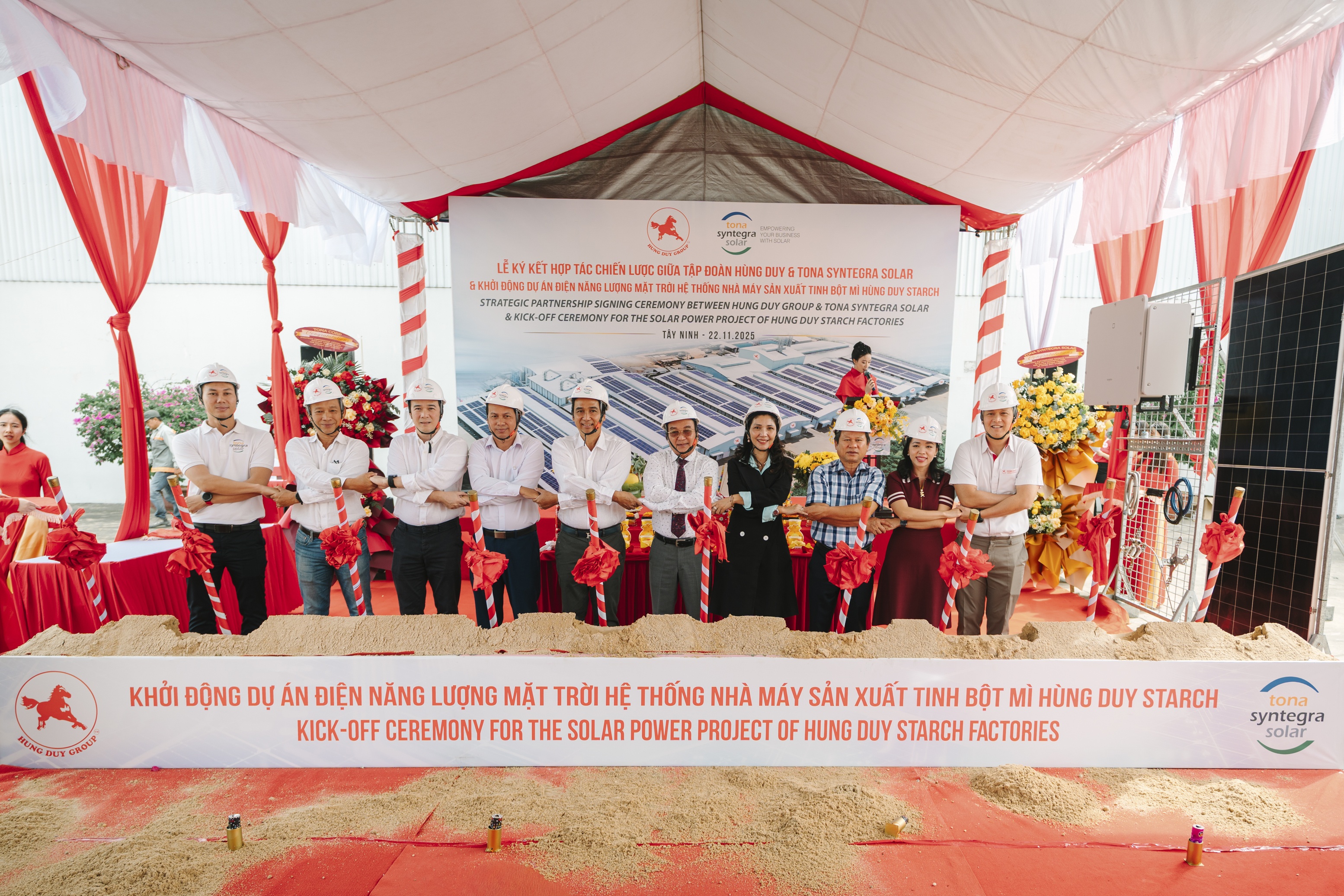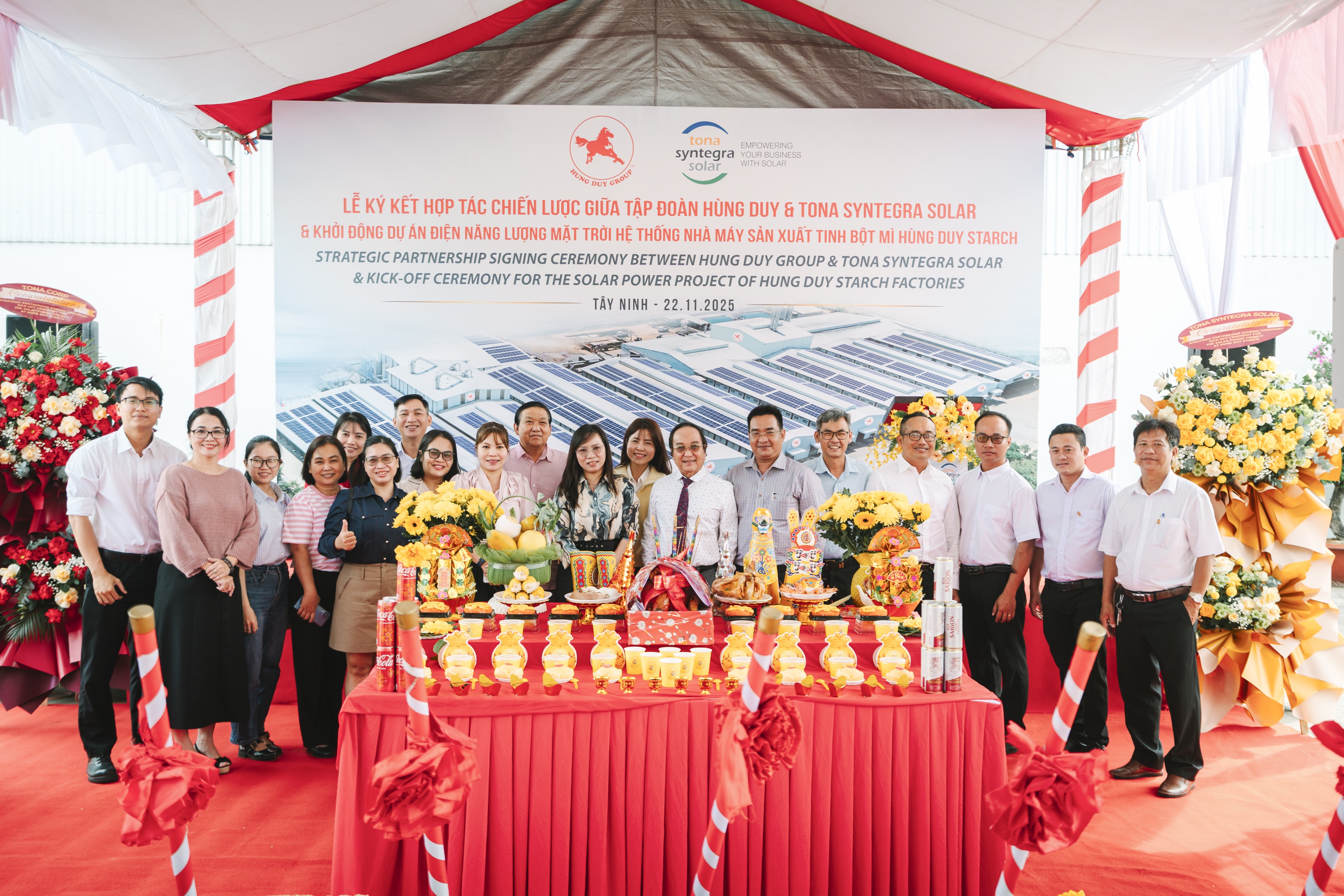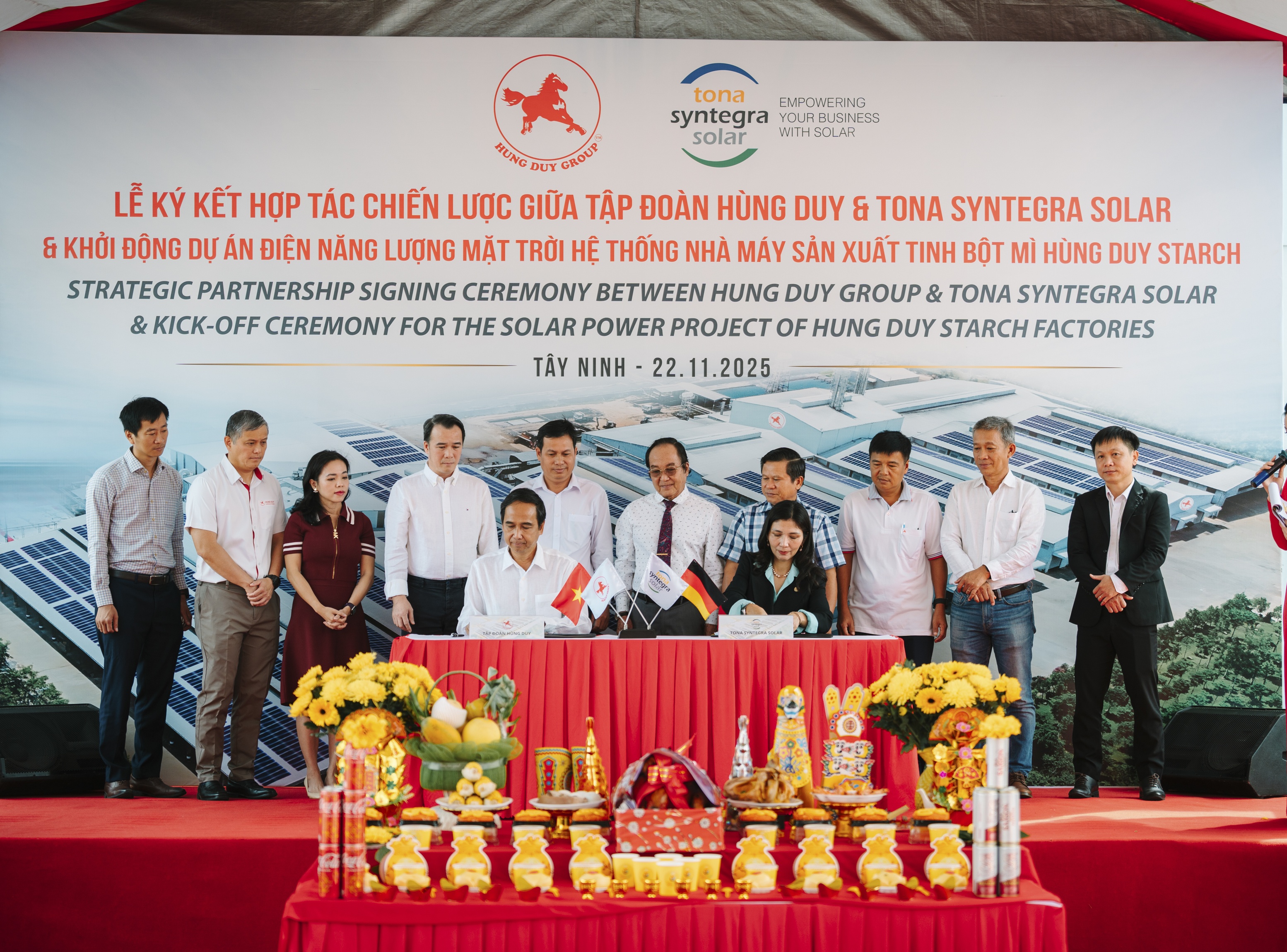 Ngày 22/11/2025, tại Cụm Công nghiệp Ninh Điền (tỉnh Tây Ninh) đã diễn ra Lễ ký kết hợp tác chiến lược giữa Tập đoàn Hùng Duy và Tona Syntegra Solar (Tập đoàn TSS), sự kiện cũng là cột mốc chính thức khởi động Dự án điện Năng lượng mặt trời hệ thống các nhà máy sản xuất tinh bột mì Hùng Duy Starch tại Tây Ninh, đánh dấu bước tiến quan trọng trong chiến lược về tăng trưởng xanh và phát triển bền vững của Hùng Duy Group nói chung, cũng như trong lĩnh vực công nghiệp sản xuất tinh bột mì nói riêng.